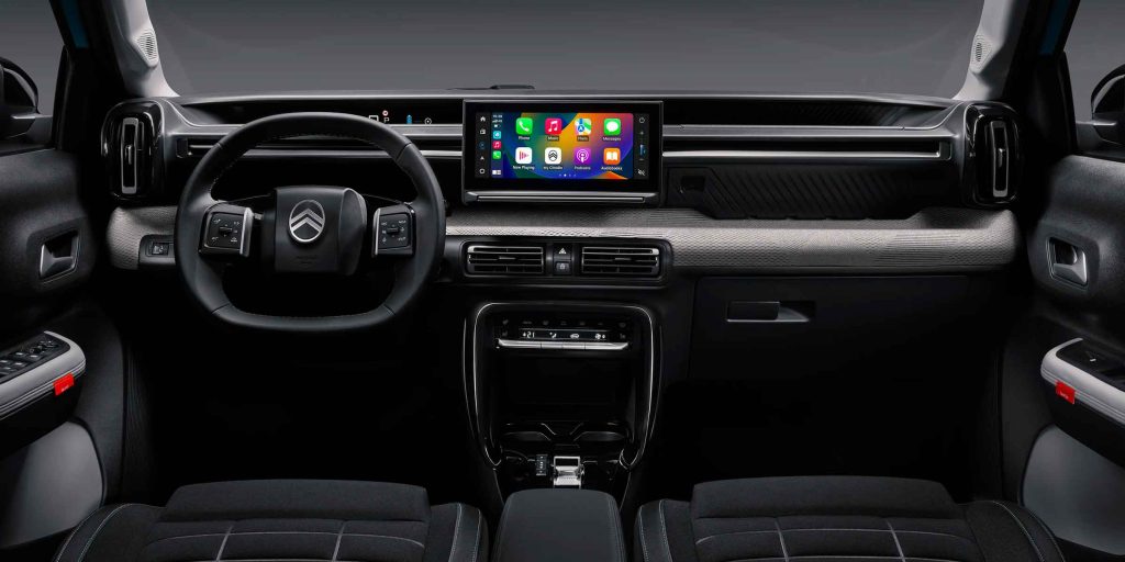 L’obiettivo principale della ë-C3 è rendere l’infotainment connesso facile e accessibile per tutti. La plancia offre comandi istintivi al volante e un pulsante “Home” su tutte le versioni, garantendo un’esperienza di guida senza stress. Ci sono due livelli di sistema di infotainment: